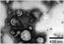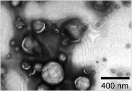 糖鎖被覆リポソームの電子顕微鏡写真