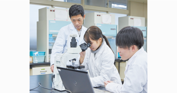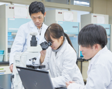 生体構成成分の取り扱い、微生物の培養や同定、有機化合物の合成と構造解析など、バイオテクノロジーおよびライフサイエンス分野の基幹科目である生化学、微生物学、有機化学の授業と連動した実践的な実習を行います。基礎法則を学びながら多様な実験技術と実験手法に関する素養を身に付け、3年次でのより専門的な実験実習へつなげます。また、実験データを整理し、結果を考察する能力を養うとともに、レポートの書き方についても学び、研究者として必要な素養を身に付けます。