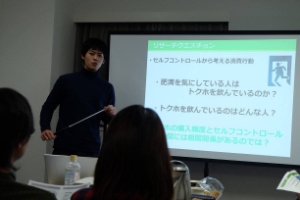 小林ゼミでは、上述のコンペの準備のなかで、中間発表会を3年次に実施しています。そこには、民間企業でマーケティング分析に長年携わってきた方にもお越しいただいて、各チームの研究についてコメントしていただいています。特に、実際の企業のなかでどのように分析がなされ、反映されるのかという視点からコメントしていただいています。こうすることで、学術的な新しさと企業での実践のバランスをとらえる機会としています。