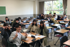 私たちが所属する本西ゼミでは、実際に自治体が直面する福祉、教育、保健や環境などの課題について取り上げ議論しています。自治体の政策について触れることができるため、実際私たちの代では全体の半分が公務員を志望しており、情報を共有したり一緒に勉強したりすることができます。現在私たちは卒業論文の制作に取り組んでおり、アンケート作りや社会人へのインタビューなどを行いながら、研究を進めています。普段のゼミの雰囲気はすごく明るく活気があり、グループ活動が行いやすい雰囲気です。また生徒も1人1人が個性的であるため、笑顔が絶えないゼミになっています。