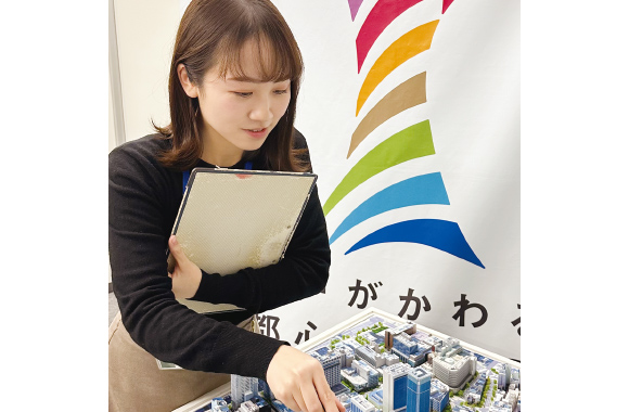学んだ知識を生かして出身地である神戸に関わる仕事がしたいと思い、建築技術職員として市役所に入庁しました。現在は神戸の都心部である三宮周辺地区の再整備を行う部署に所属し、駅前広場とその活用に関する業務を担当しています。民間事業者や市民の方々と共に神戸の玄関口にふさわしい駅前のあり方を考え、実現に向けたルール作りなどソフト面の事業に取り組んでいます。神戸市は28年前に震災を経験し、これまで復興復旧に全力を注いできたため、都心部の再整備に手を付けられない時間が続いていました。近年になり大きな再整備に向けて動き出し、大規模なプロジェクトに携われることにやりがいを感じています。さらに多様な分野の実務を重ね、知識、経験に富んだ建築技術職員をめざします。