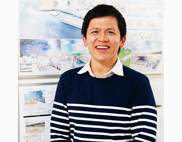 住宅や公園、道路や河川などの開発事業はそれぞれ行政の担当部署が異なるため、都市づくりにおいては相互の連携が重要です。私は、多くの外国人観光客が集まる観光都市へと発展を遂げたシンガポールの水辺開発をテーマに、どのような組織体制のもとで開発に取り組んだのかを研究しました。我々がふだん見ている地図は必ずしも正確ではありません。まずは現地へおもむき、地形や標高などを一つひとつ実測するとともに、地図には記されない建造物や道路の構造などを調査。正確なデータをもとに図面化することで、都市構造の視覚的な理解につながりました。また、開発の背景やその変遷についても知識を深めるため、関連資料を収集。その際、我々の研究室と国際交流事業を行った縁のあるシンガポール国立大学のご厚意で、大学所蔵の貴重な資料を閲覧させていただけました。なかには軍管轄の機密資料もあり、研究者間の良好な関係構築がいかに大切かを実感しました。帰国後、膨大な量のデータを整理・分析、修士論文にまとめました。今回の研究が新たな都市開発に役立てばうれしいですね。