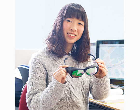 3年次の授業でピクトグラムについて学んだことをきっかけに、地下街のサインを研究テーマに選びました。サインは、色彩とピクトグラムが一体化した構造です。目の病気で色が判別しにくい方の場合、どのように認識しているのかを検証しました。赤と緑それぞれの色覚異常を疑似体験できるメガネをかけた場合、何もかけない場合の3パターンに分け、大阪梅田の地下街で実験。学生数十名の協力を得て、歩き方、行動、見たサインの違いを調べました。さらに「すぐ見つかるか」「すぐ理解できるか」「目的地への移動に役立つか」という3つの質問を投げかけ、全てのサインを5段階で評価。目を引くはずの赤が、色覚異常だと黒に見えて認識しづらく、比較的誰にでも見やすい色は青という結果が出ました。見過ごしがちなことを明らかにできるのが研究の魅力だと感じました。就職先はハウスメーカーです。色彩にこだわった家づくりに力を入れ、真っ白になりがちな場所にアクセントになる色を加えて落ち着きを演出するなどの工夫を考えています。
