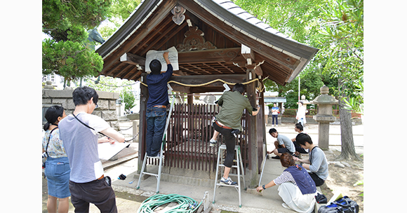 文化財を含む歴史的な建物がもつ魅力を実感し、その意義を理解し、正しく位置づけ、さらにその価値を広く世界に発信するための力を、建築に関わる誰もが決して免れない基礎的な素養の一つとして身につけます。我が国が世界に誇る国宝や重要文化財に指定されている建物を対象にした、実測図面のトレースや模型製作に取り組み、さらに現地を訪れ実見するとともに、身近にある歴史的な建物の文献調査や現場での実測調査などを通して、理解の深化と実践力の向上を目指します。