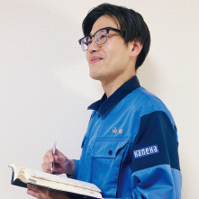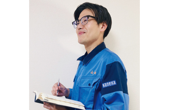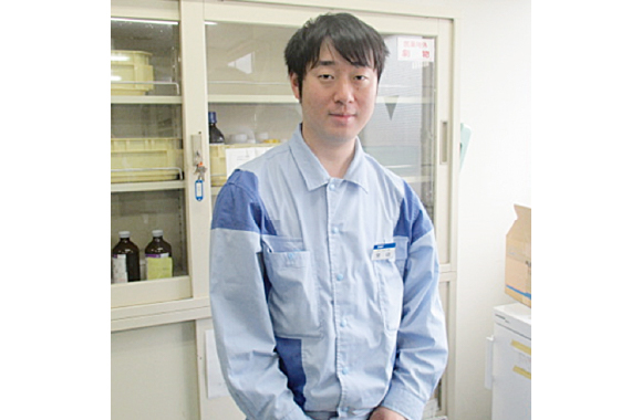 社会で幅広く使用される製品を作りたいという思いがあり、この会社を選びました。現在、自動車用途に使用される塩化ビニル樹脂の研究開発を担当しています。メーカーが求める機能を発現する樹脂の開発が私のミッションです。まずメーカーの情報を収集して実際に樹脂を開発し、その性能を評価した上でメーカーに開発品を提案するという流れで業務を進めていきます。樹脂を設計する能力だけでなく、評価方法を考える力やコミュニケーション能力も必要となり、開発品のスケールアップや生産設備を使用した試作を行う際は、製造部門と協力して取り組んでいます。今後は日本のみならず、世界で使用される製品を開発できる人材になることが目標です。
