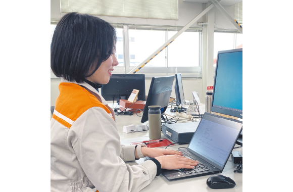 研究発表で培ったわかりやすく伝える力が役立っています。開発の方から頂いた情報から重要なキーワードを拾い上げ、工場の方が動きやすいよう適切に伝えることを心がけています。