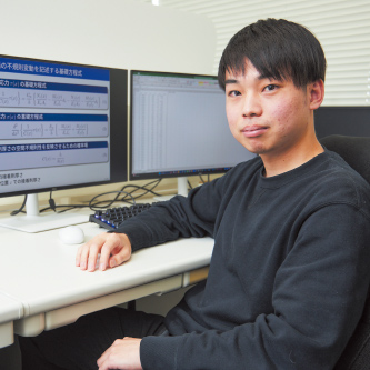 私たちの研究テーマであるリスク解析は、数学を応用して機械や電気、さらには金融と幅広いテーマに応用することができます。横関さんの研究は土木部門の課題解決に資するものですが、水素自動車や飛行機にも応用できる可能性を秘めています。今後も数学の力を生かして、安全・安心なまちづくりや、新しい技術開発に取り組んでほしいと思います。