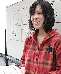 実は、高校生の時は、人前で自分の意見を言うのが苦手だったんです。入学してからも最初のグループ作業では、ついつい周りの意見に流されてしまうというか、それでいいよ~ってつい同意してしまうタイプというか。でも、実習などでモノ作りを行うようになって、これじゃダメなんだって思うようになりました。実習ではグループ制作もありますし、自分が作りたい物をメンバーにわかってもらおう、実現しようとしたら、自分の意見を言わないと始まらないんですよね。以心伝心で、私の考えていることをわかって、では自分の意図するものが作れないんです。そして、わかってもらえないことや、上手く伝えられないことを悔しく感じたりしましたが、いつの頃からか「そうか、まずはこうやって意見をどんどん口にすること、それ自体が表現の始まりなんだ」って気づきました。頑張って発言しても、自分の意見が通らないこともあるけれど、それでも自分の意見を言うこと、伝えようとすることが大切なんだって。