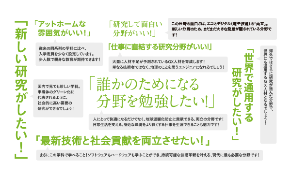 「データ」や「電気」、「環境」について学べる、他の学部とのちがいは?
