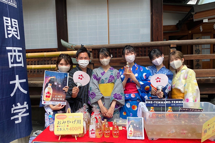 ゼミの活動として「UME・TEMMAプロジェクト」に参加し、大阪天満宮の協力を得て、私たち自身で梅サイダーを開発しました。もちろん商品を販売することも大切なのですが、商品を通じて大阪天満宮、天満という土地柄を知っていただくなど、地域をいかにブランド化、プロモーションするかなど、本当に勉強になりました。また吹田市リサイクルセンターの市民研究員の方々と協力して活動をしたり、吹田市プラスチックごみ削減動画コンテストへの参加、G20大阪サミット、海洋ごみに関するシンポジウムへの参加など、興味のあることにどんどんチャレンジをしていきました。