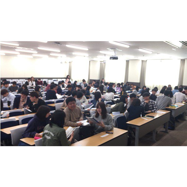 社会学専攻の新入生の必修科目「基礎社会学1」の一クラスでは、先輩である2年次生・3年次生のL.A.(Learning Assistant)が授業のサポートをしています。講義形式の授業で社会学の入門的な内容を学ぶとともに、4人ずつのグループワークで学びをより一層深めるこの授業で、3人のL.A.は、まだ大学の授業の形式や内容に慣れていない新入生を先輩としての立場から、社会学について説明をしたり、グループワークがスムーズにいくようアドバイスをしたりといった活動をしています。
