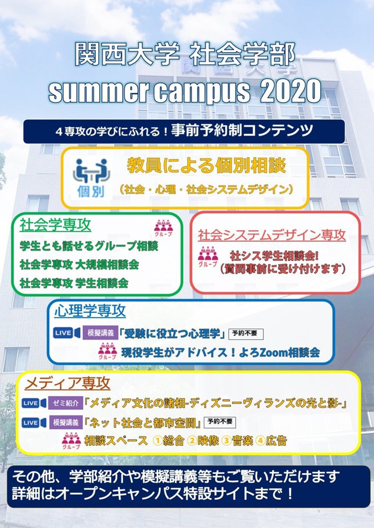 8月2日(日)に、WEBでサマーキャンパス学部イベントを開催します。