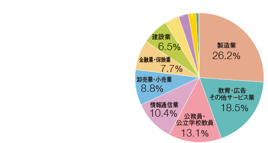 社会安全学部第10期生の就職率は、99.2%(男子99.4%、女子99.0%)と、引き続き高水準を維持し、13学部中、上位の就職率となっています。また、公務員・公立学校教員の占める割合も13.1%と高い水準を保っています。安全・安心に対する社会の高いニーズに応えた結果といえます。