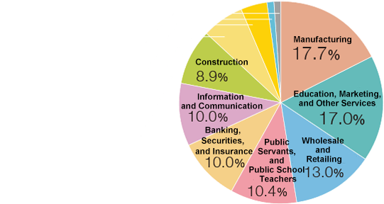 The employment rate of students who graduate from the Faculty of Societal Safety Sciences remains high. The ratio of civil servants and public school teachers also tends to be higher than that of other faculties.