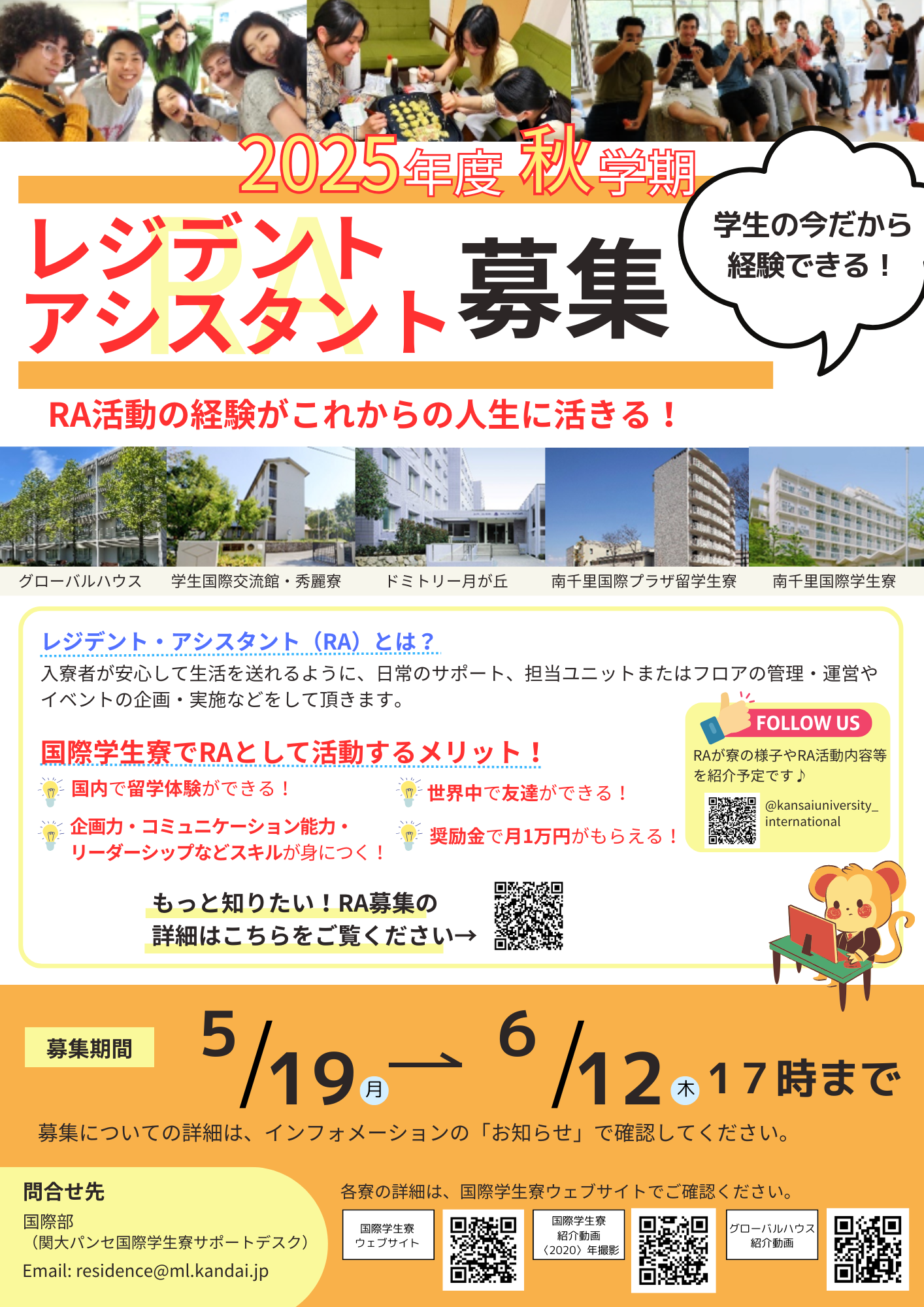 Recruiting Resident Assistants for Fall 2025 (Japanese text only)