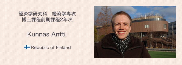 現在、修士論文を執筆中で、20世紀中頃のフィンランドと日本の経済について比較研究を行っています。1940年の夏季オリンピックは東京で行われる予定でしたが、第二次世界大戦の影響で立ち消えになりました。実は東京の次の候補地は偶然にも、母国フィンランドのヘルシンキでした。しかしながらヘルシンキでのオリンピックも東京と同じく第二次世界大戦を理由に当時は実現しなかったのです。この両オリンピックが中止となったことが、フィンランドと日本の経済発展にどう影響を与えたのかについて研究しています。