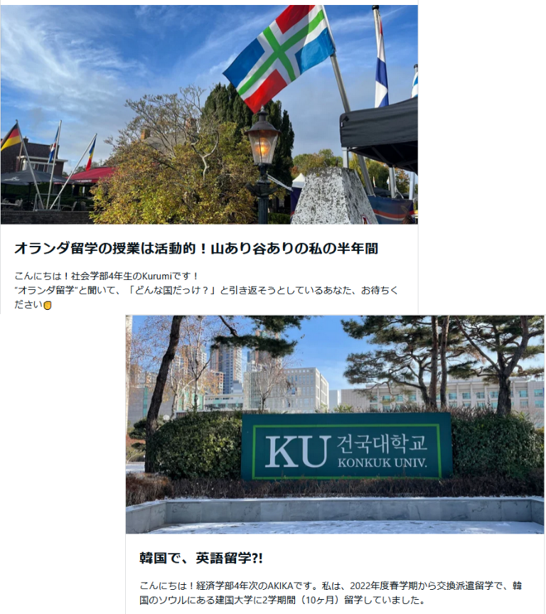留学を通じて得た学習成果や異文化適応能力などのグローバルマインドなど、留学を目指す皆さんにとって参考になる留学経験者の生の声をぜひご覧ください!