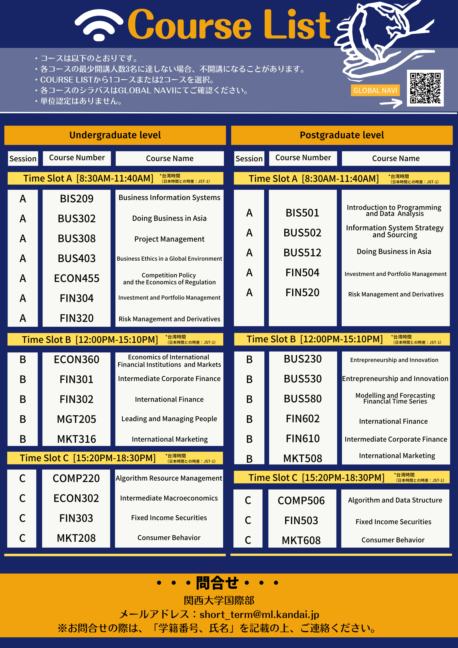 ※お問合せの際は、「学籍番号、氏名」を記載の上、ご連絡ください。
