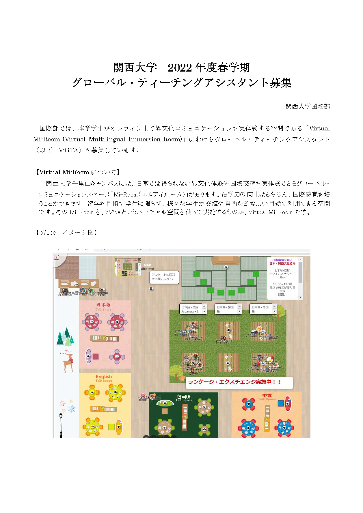 Virtual Mi-Room(バーチャル・エムアイルーム)Global Teaching Assistant(GTA)を募集します!