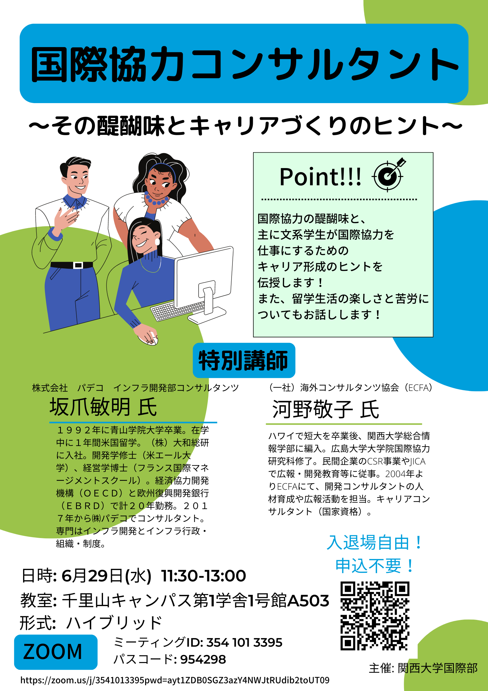 国際協力ガイダンス「国際協力コンサルタント~その醍醐味とキャリアづくりのヒント」開催のご案内