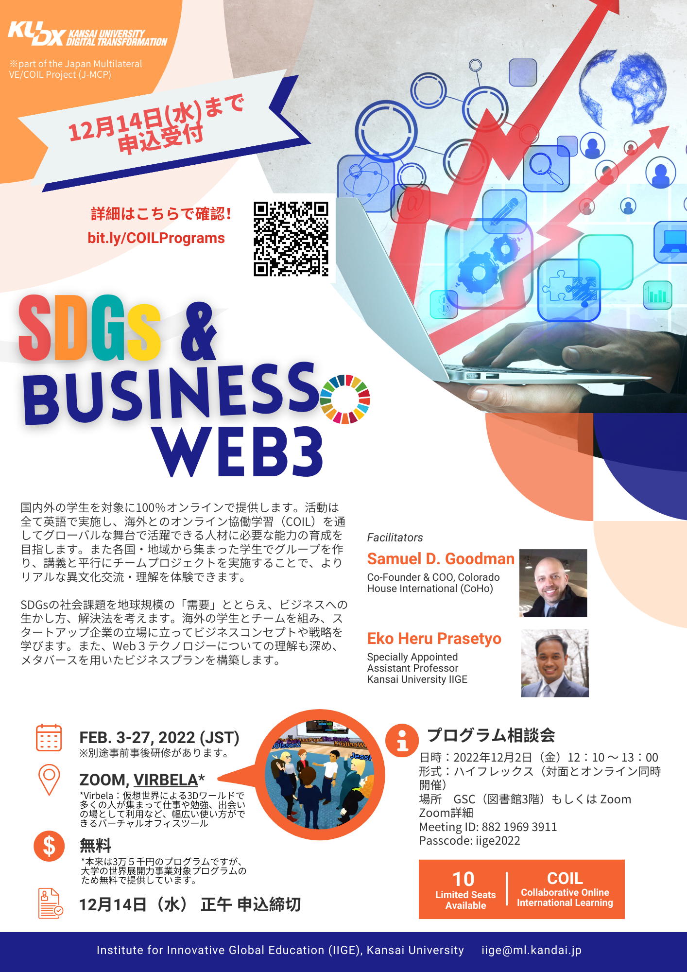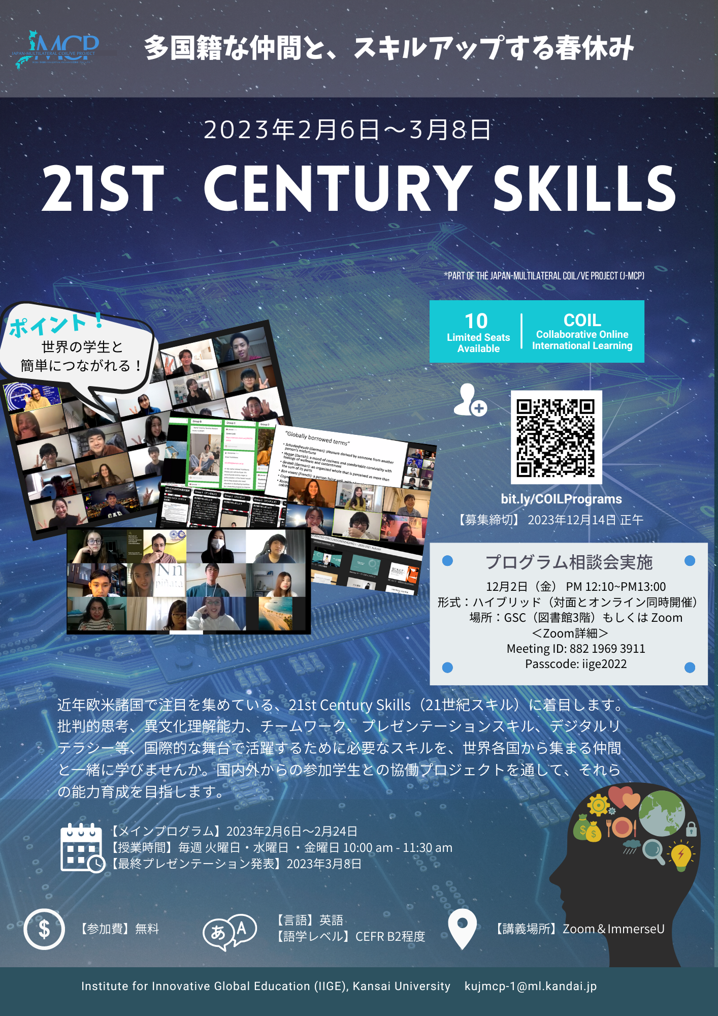 本プログラム問い合わせ先: 国際部グローバル教育イノベーション推進機構(IIGE)kujmcp-1@ml.kandai.jp