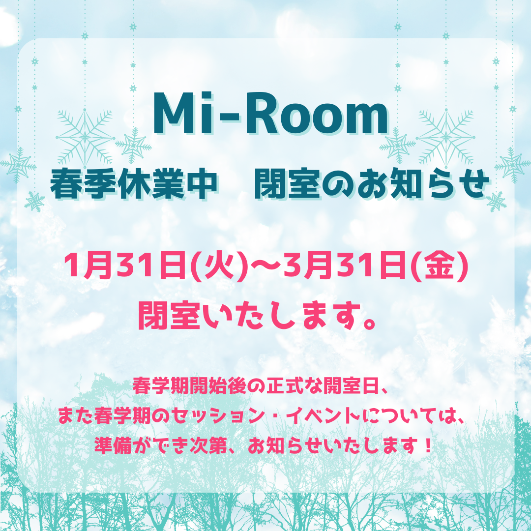 Mi-Roomは1月31日(火)~3月31日(金)の期間、閉室いたします。