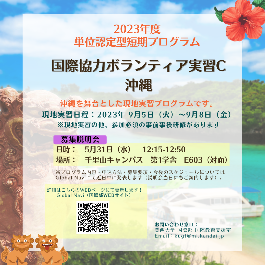 このたび、2023年度 単位認定型短期プログラム「国際協力ボランティア実習C(沖縄)」を実施する運びとなりました。