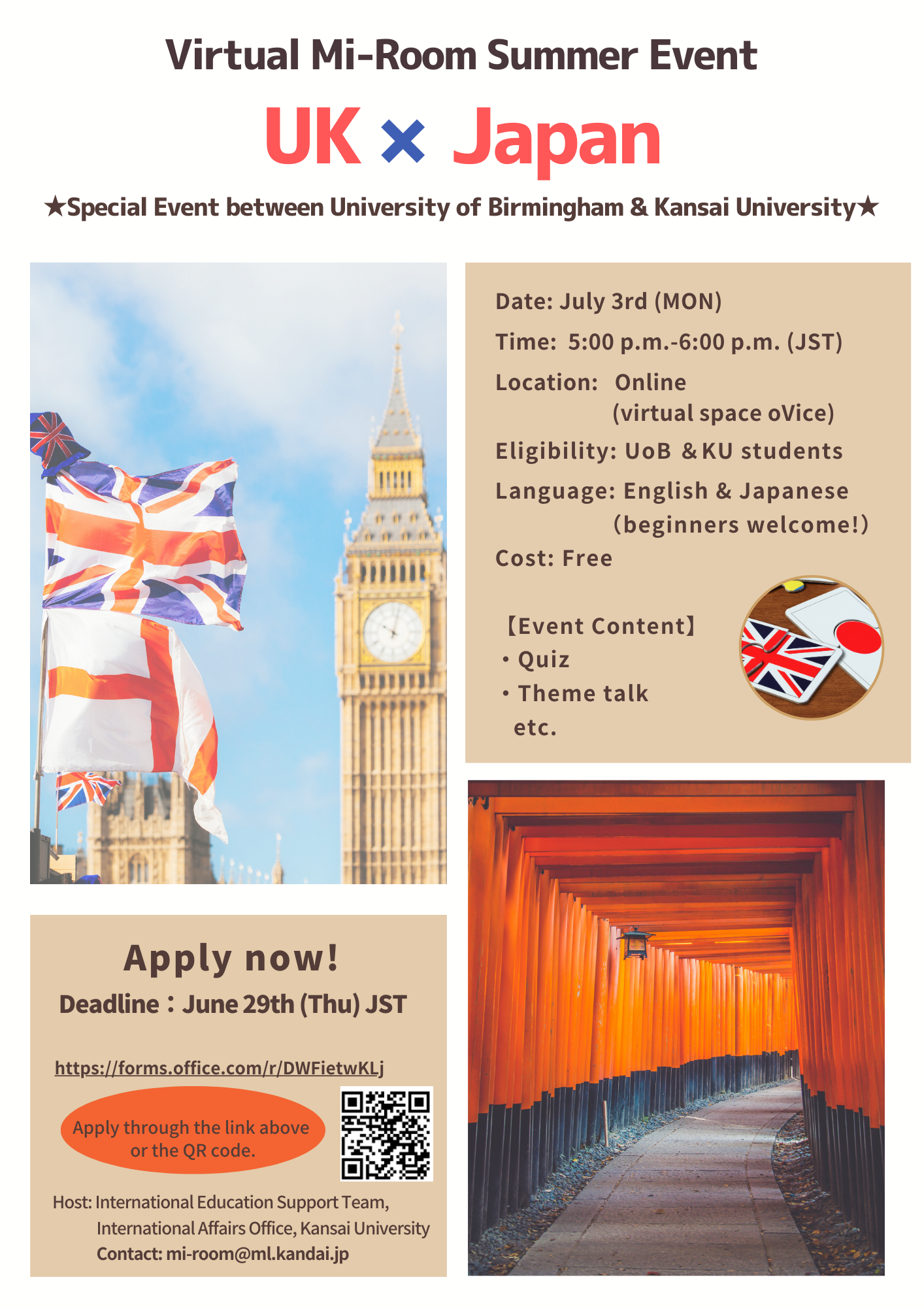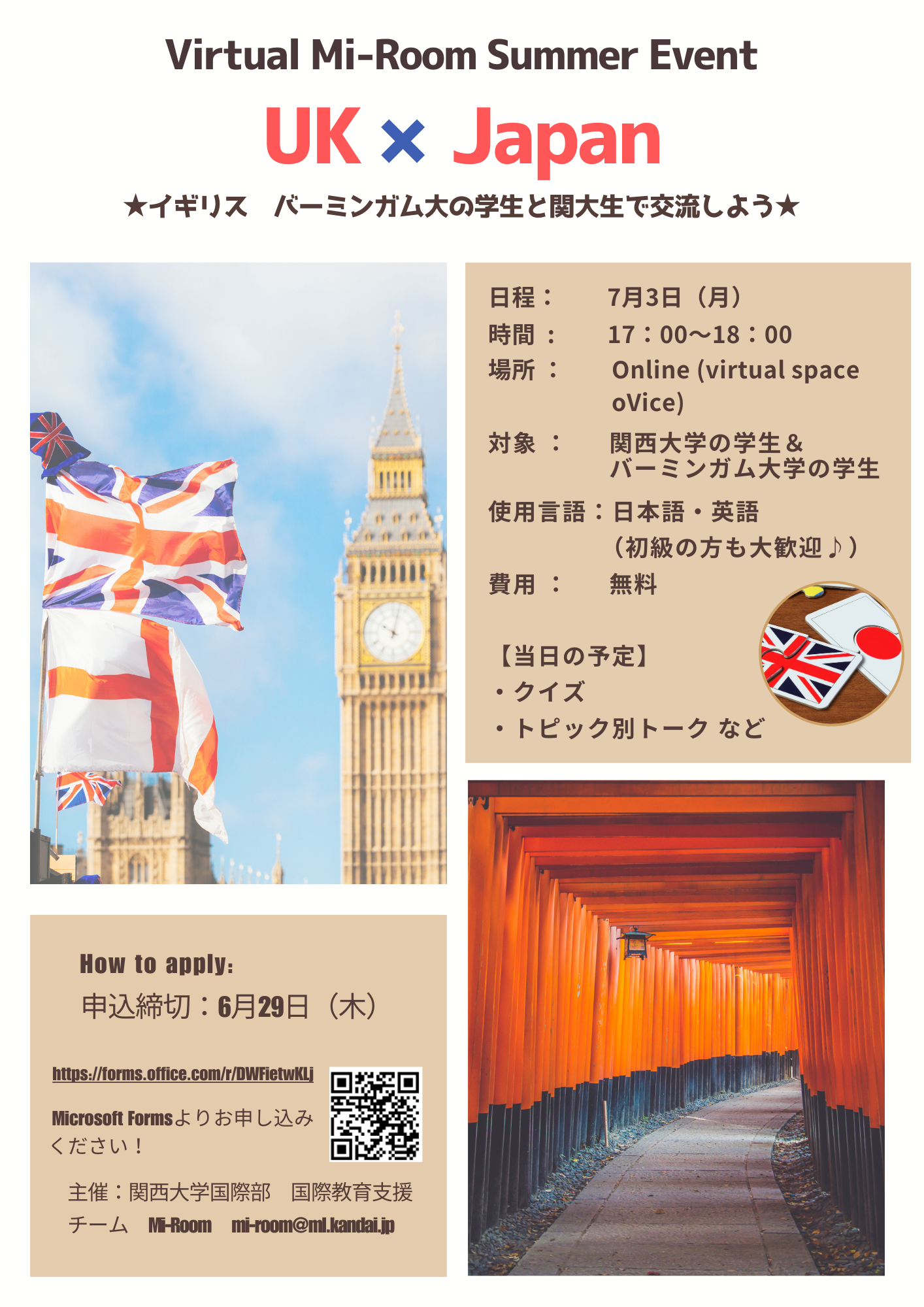 Virtual Mi-Room Summer Event UK×Japan ★イギリス バーミンガム大の学生と関大生で交流しよう★