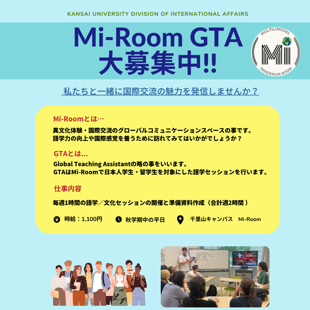 【Mi-Room】国際部学生スタッフGTA(Global Teaching Assistant)募集