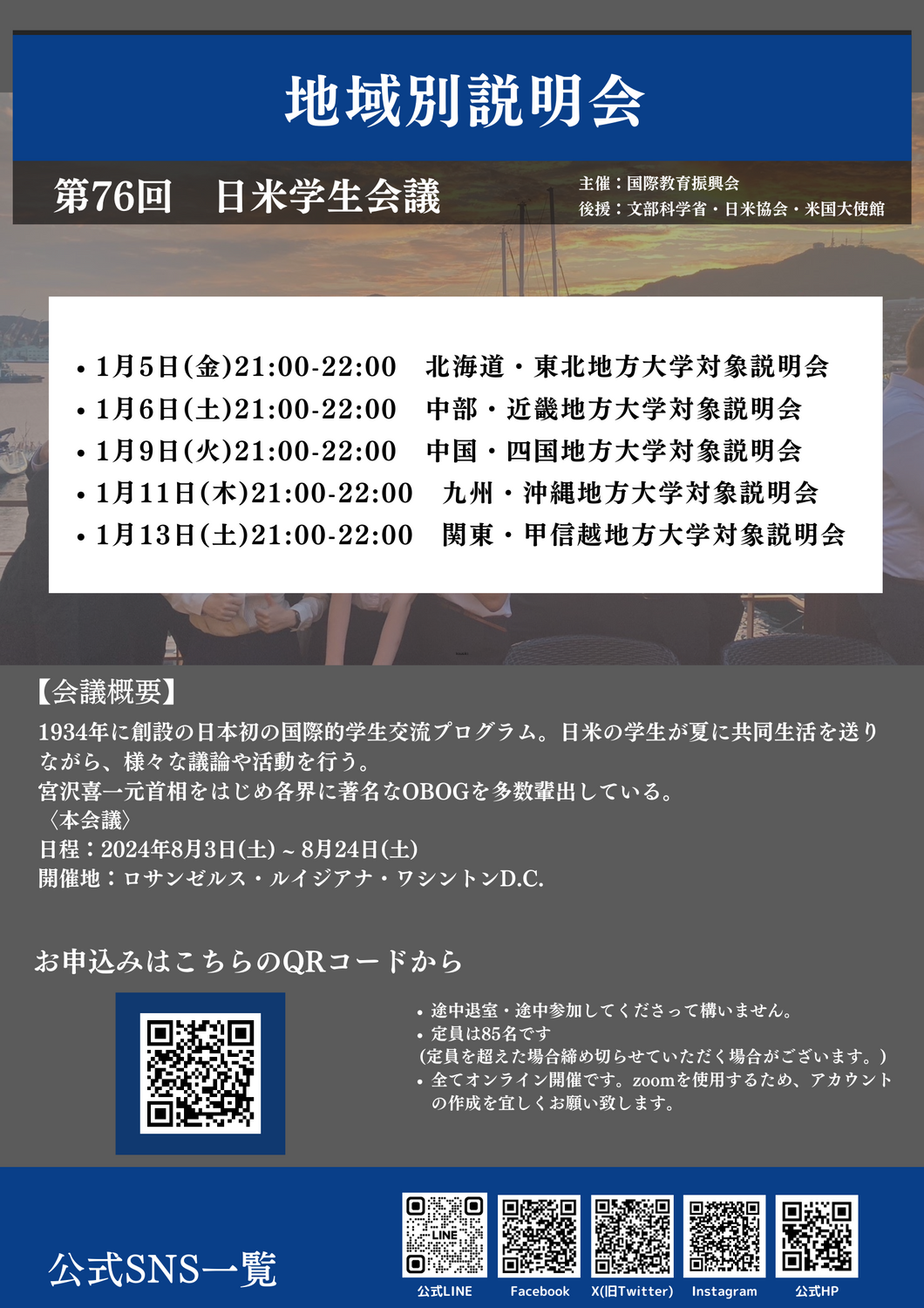 【日米学生会議】第76回日米学生会議 地域別説明会・全体説明会のご案内(1月)