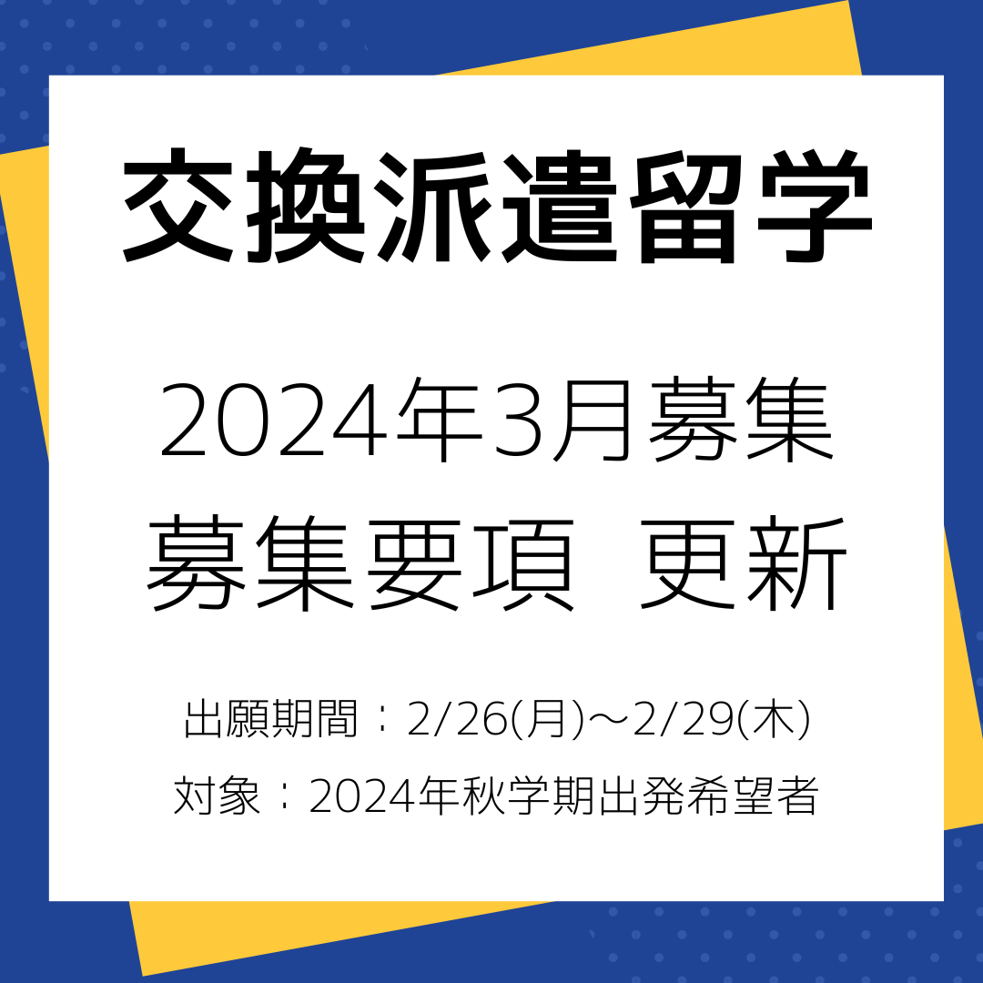 【交換派遣留学】2024年3月募集交換派遣留学募集要項 2.1更新のお知らせ(2024年秋学期出発希望者対象)