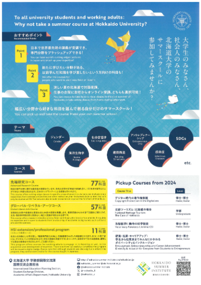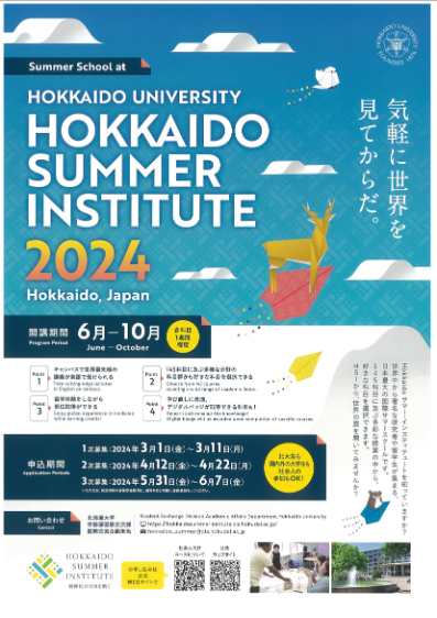 北海道大学より、サマースクール「Hokkaido サマー・インスティテュート2024」の案内がありました。