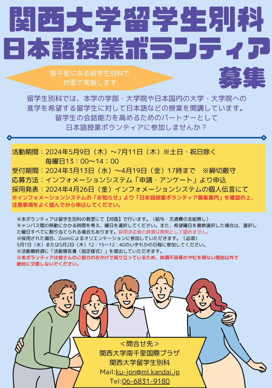 2024年度春学期 日本語授業ボランティア募集について