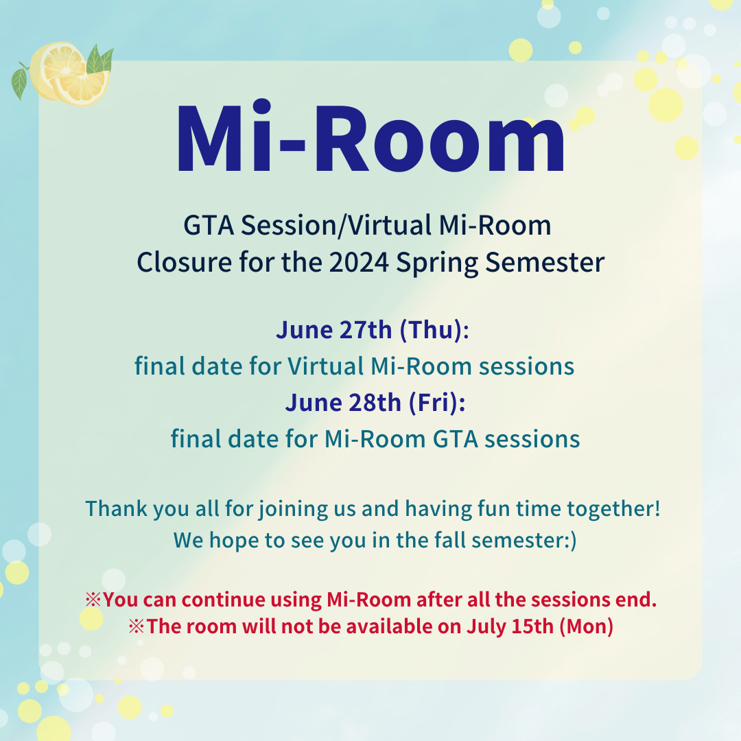 春学期セッション・バーチャルMi-Room終了のお知らせ/End of the semester’s Sessions and Virtual Mi-Room