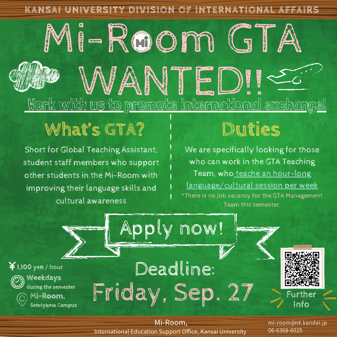 【Mi-Room】国際部学生スタッフGTA募集/Global Teaching Assistant Wanted
