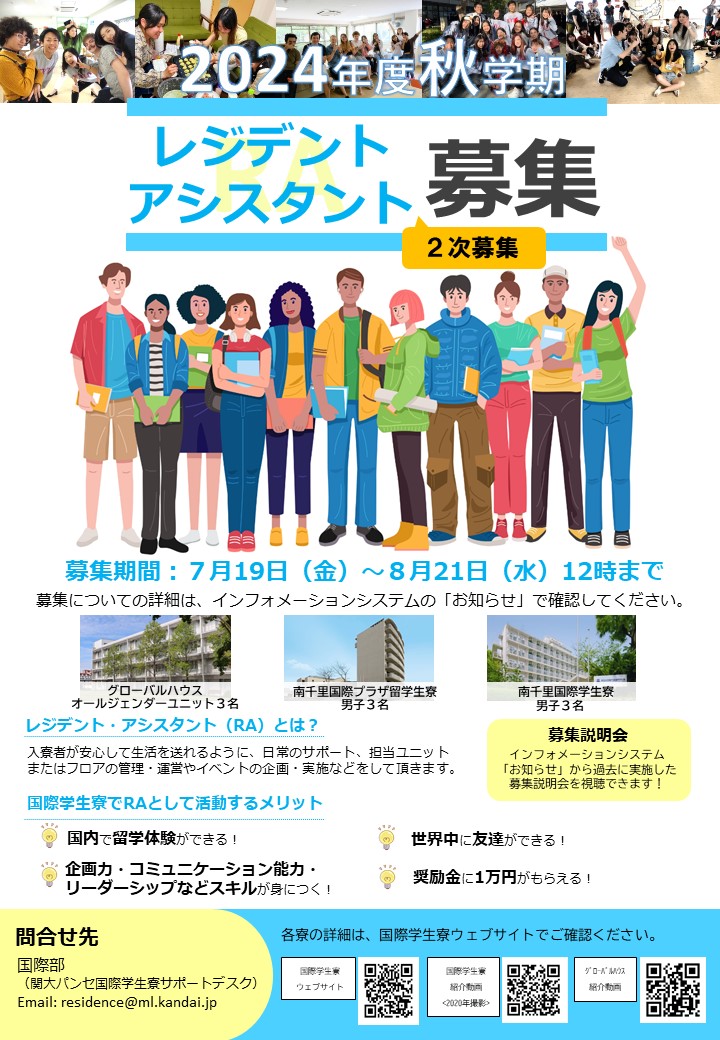 ◆2次募集◆2024年度秋学期 レジデント・アシスタント(RA)募集!