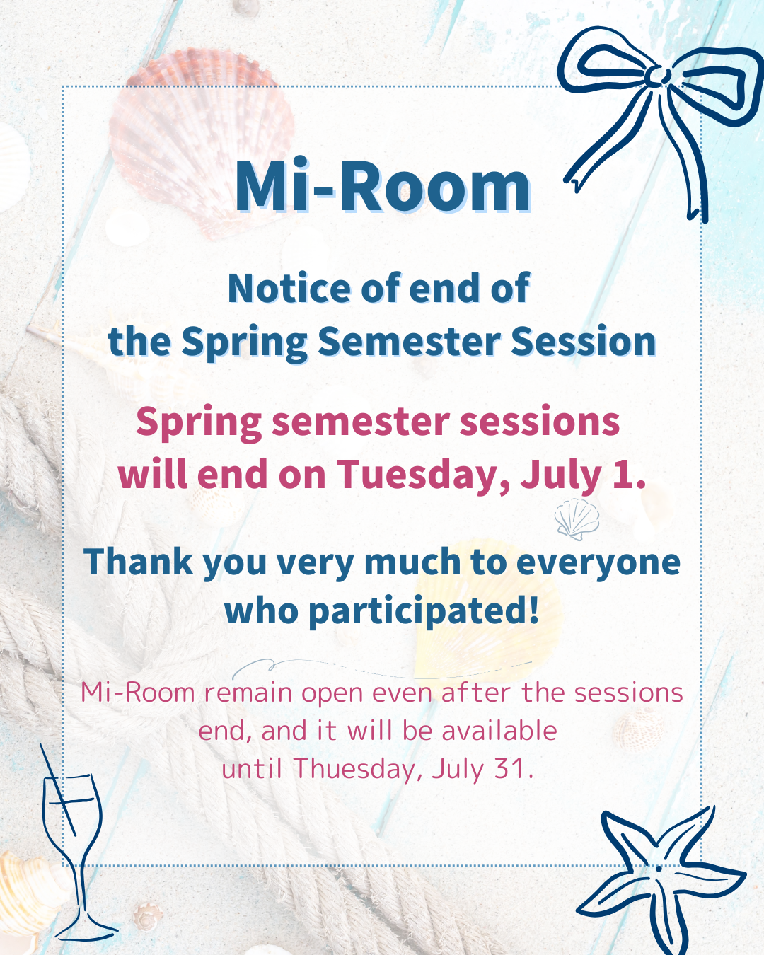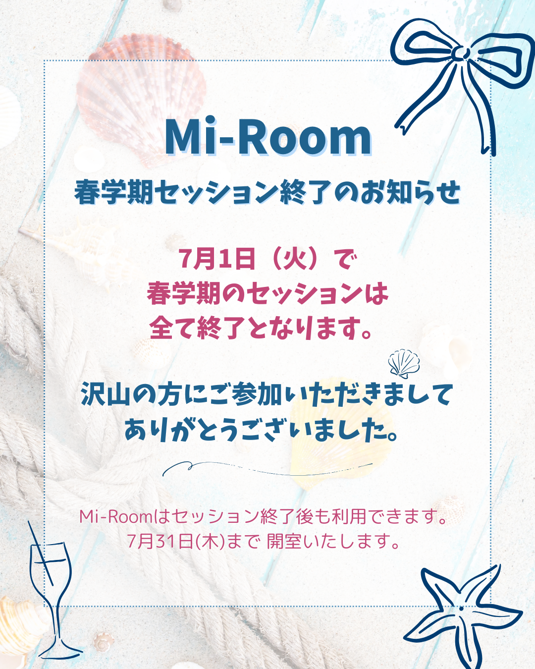 ※セッション終了後もMi-Roomは開室しております。お喋りや自習にご活用ください。7月31日(木)まで利用可能です。