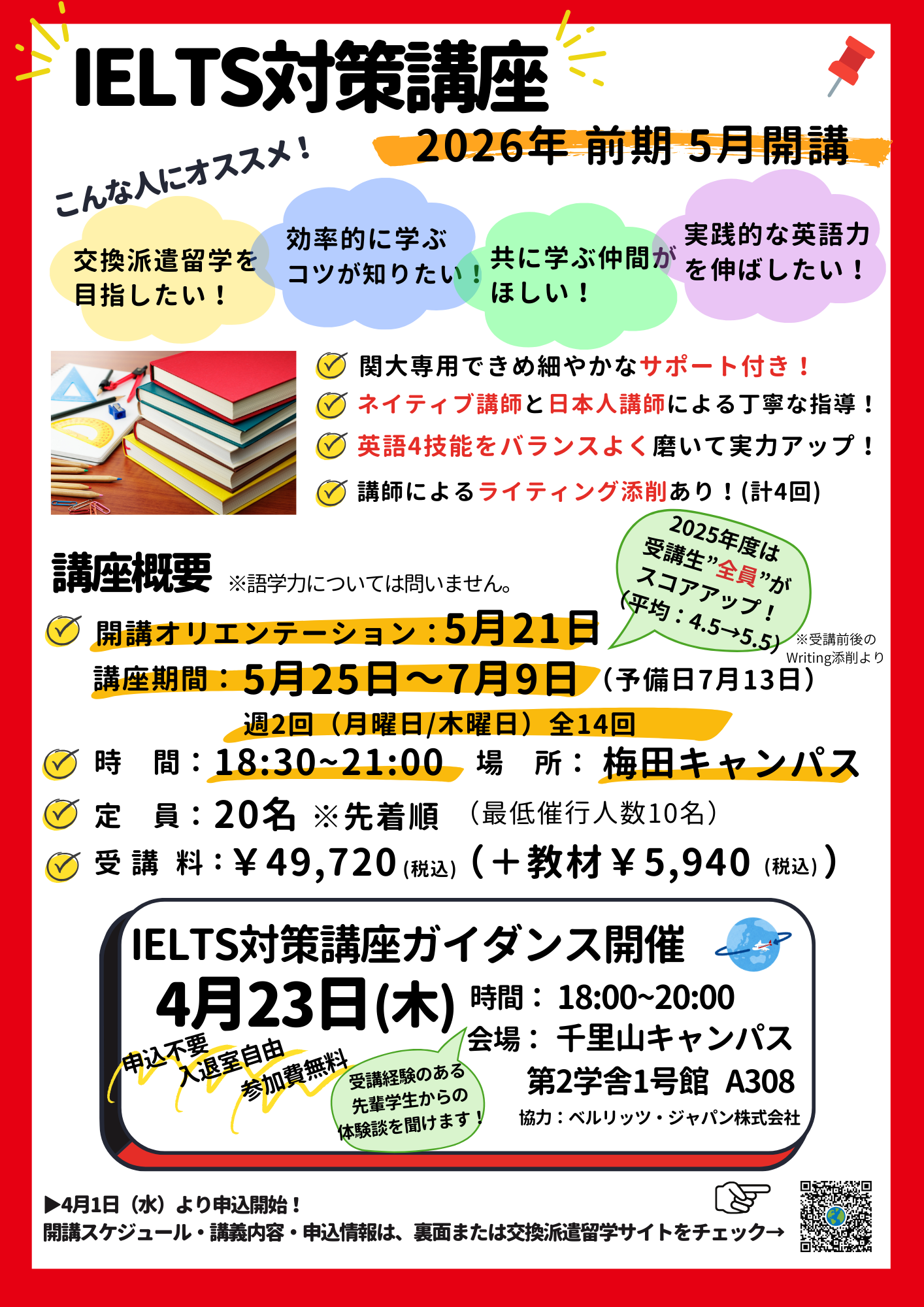 【IELTS】関大生専用 2026年度(前期)IELTS対策講座 受講生募集!のお知らせ