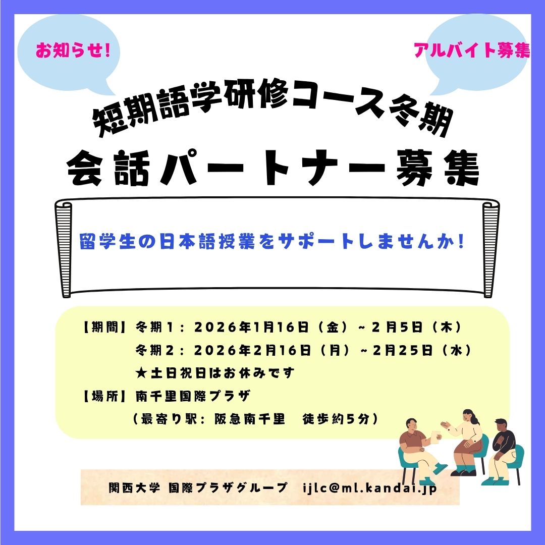 【冬期1の応募締切延長】🌏 短期語学研修コース「日本語会話パートナー」募集(アルバイト)のお知らせ 🌏