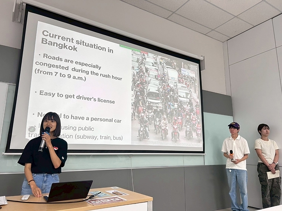 [タイ]留学前に設定した目標は、異文化理解を深めることと、異なる環境で柔軟に対応できる力を身につけることであった。授業や企業訪問では、タイの歴史や経済、現地で活躍する日本企業の姿を学び、知識としての異文化理解を深めることができた。また、寺院訪問やマッサージ体験といった文化交流を通じて、教室では得られない実感を伴った理解につながった。さらに、日本語TAプログラムでは、他者との協働や相手に合わせた伝え方を意識する場面が多く、適応力やコミュニケーション能力の向上を実感した。留学を通じて、当初掲げた目標は十分に達成できたと考えており、今後の学習や将来の進路に活かせる大きな財産となった。(政策創造学部生)