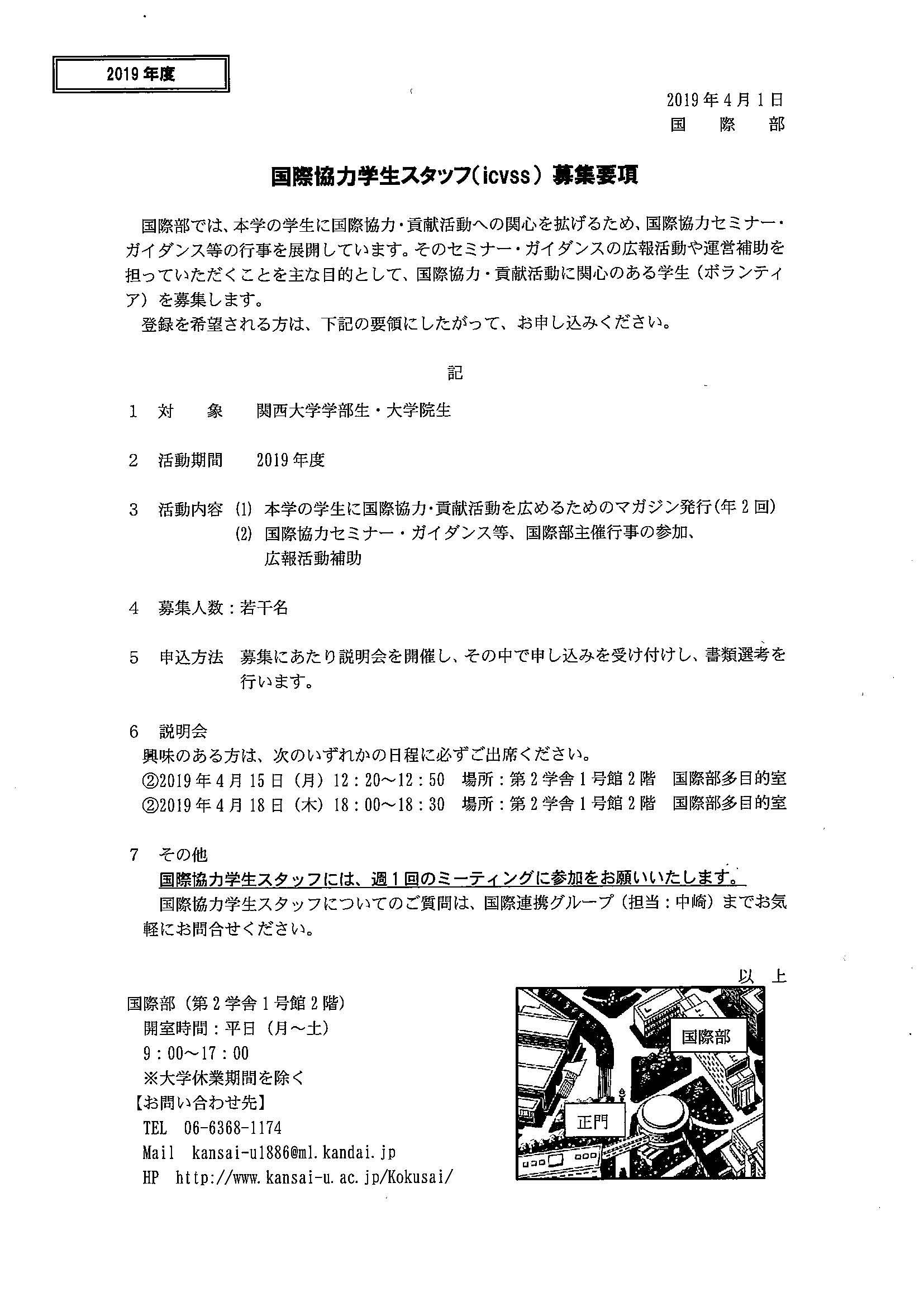 2019/04/01 国際協力学生スタッフ(icvss)募集!
