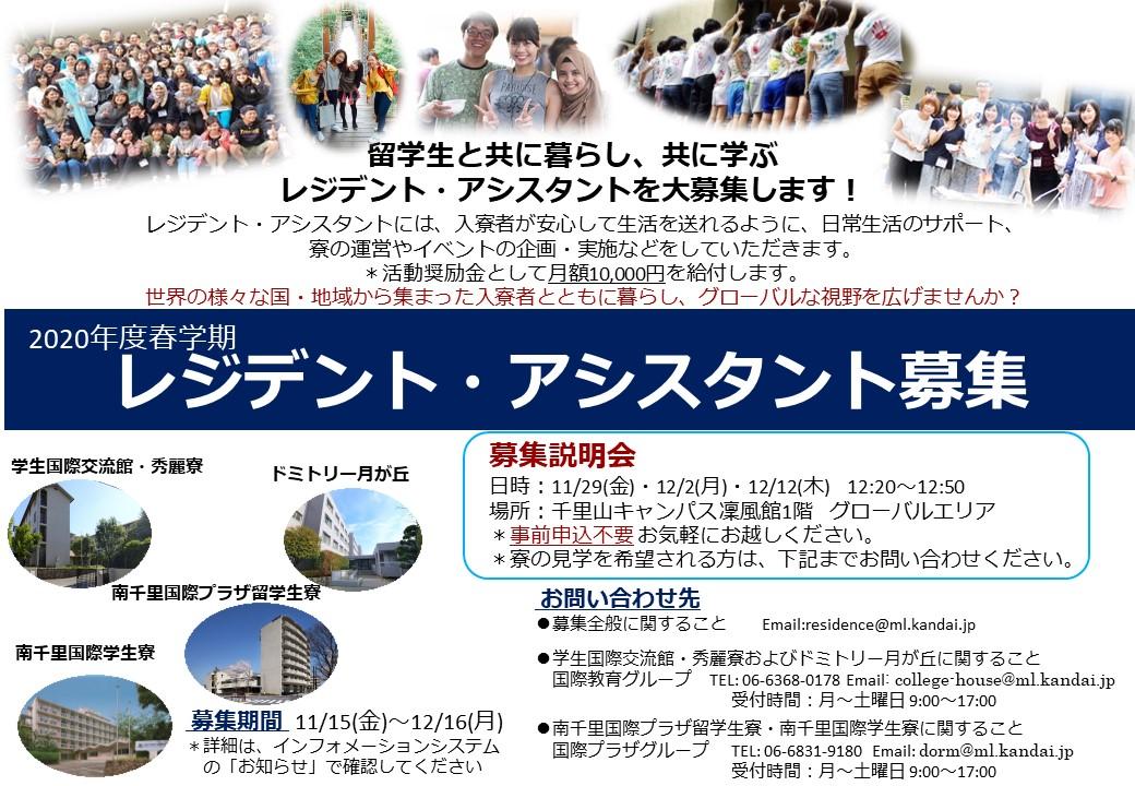 2019/11/15 【2020年度春学期 レジデント・アシスタント大募集!】