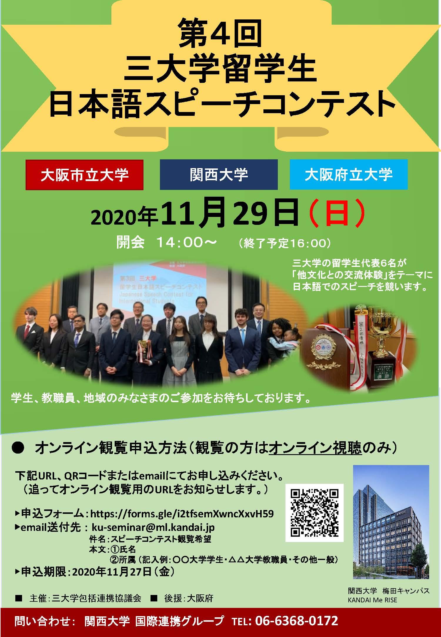 2020/11/05 第4回 三大学留学生日本語スピーチコンテスト開催!