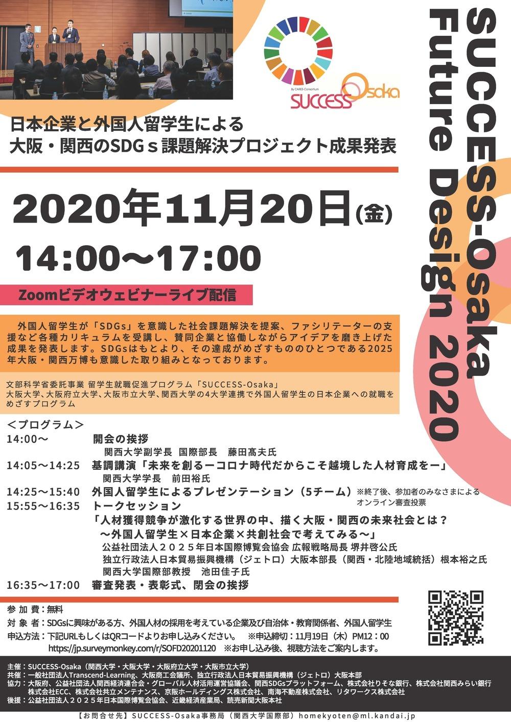 2020/11/09 「SUCCESS-Osaka Future Design 2020」日本企業と外国人留学生による大阪・関西のSDGs課題解決プロジェクト成果発表会開催!