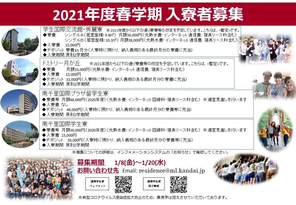 2020/11/20 2021年度春学期 国際学生寮 一般入寮者募集