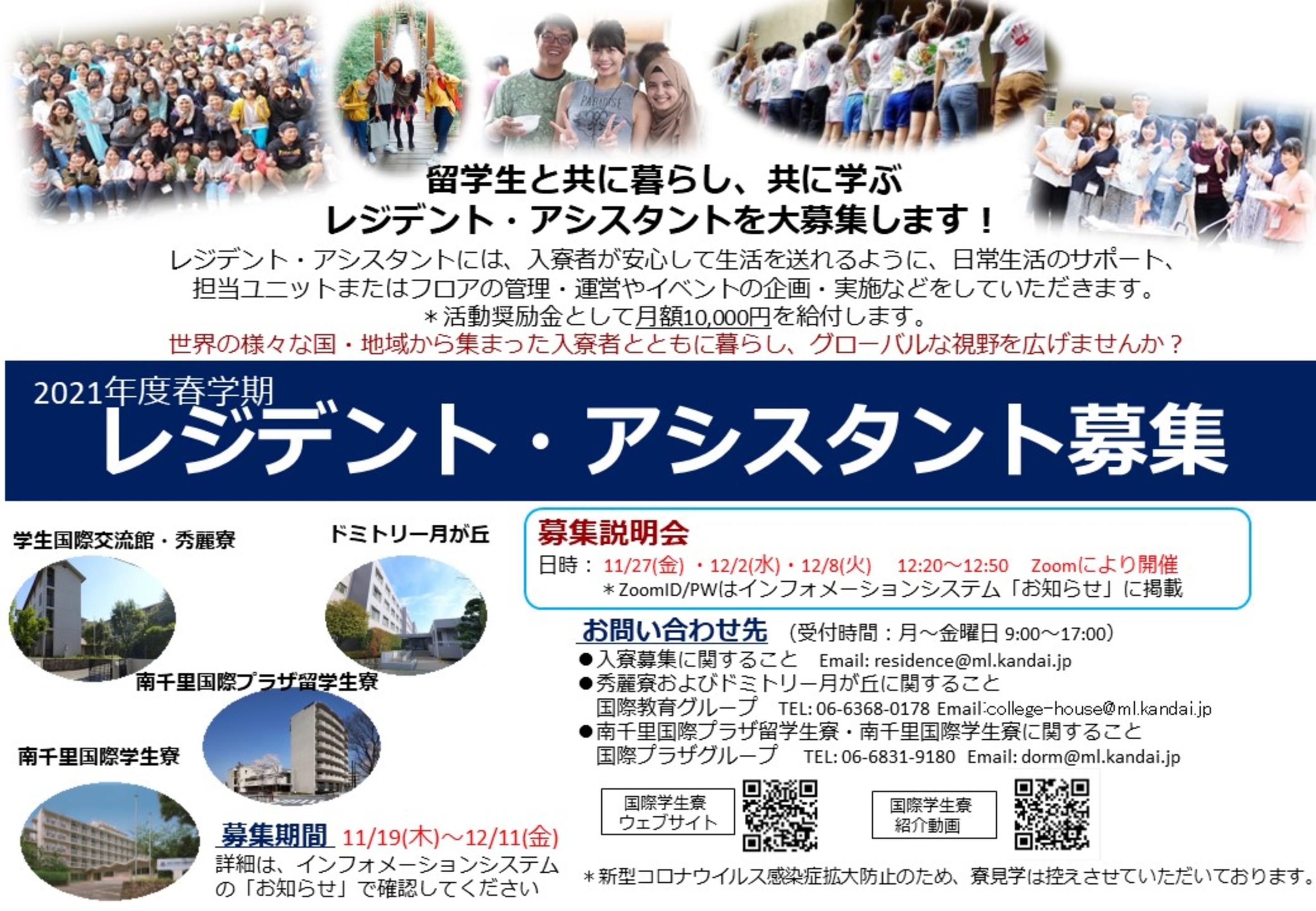 2020/11/20 ◆国際学生寮で国際交流しませんか?◆2021年度春学期 レジデント・アシスタント大募集!