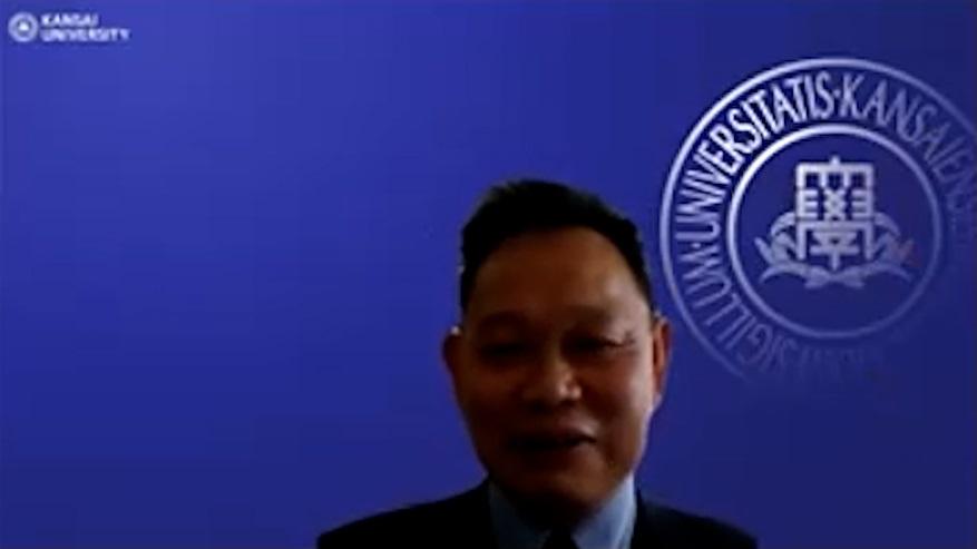 ガイダンス冒頭では、関西大学国際副部長(国際研究・協力担当)四方 博之教授よりご挨拶いただき、その後、今回の講師として関西大学商学部 秋学期「国際協力論」ご担当の非常勤講師 福永 敬 先生をお迎えしました。