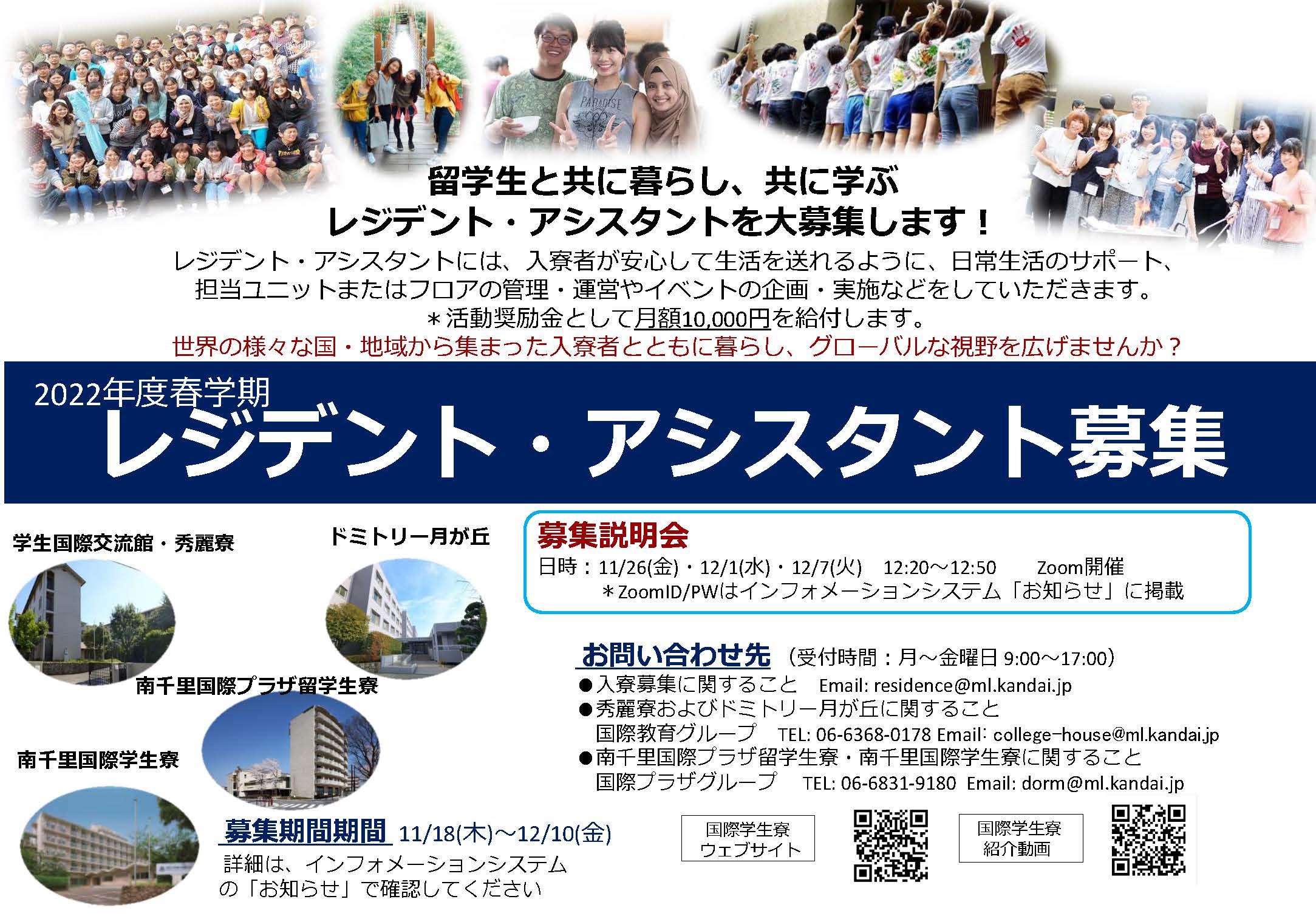 2021/11/22 ◆国際学生寮で国際交流しませんか?◆2022年度春学期 レジデント・アシスタント大募集!