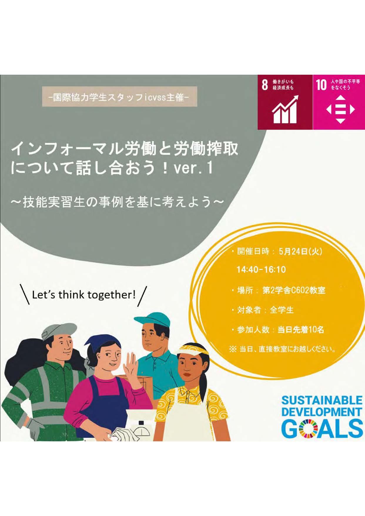 今回のicvssが企画するイベントは「インフォーマル労働について話し合おうver.1~技能実習生の事例を元に考えよう~」です!