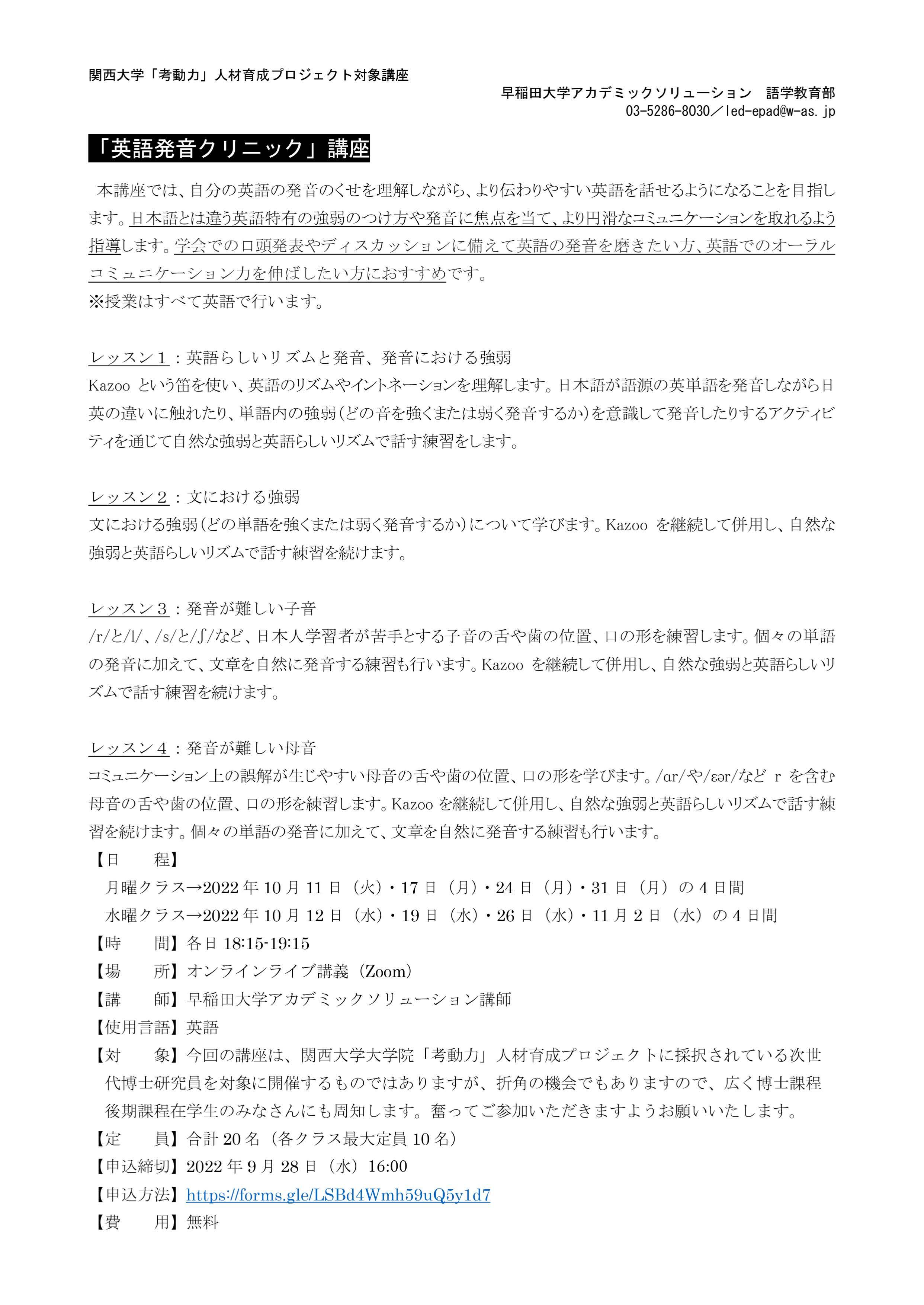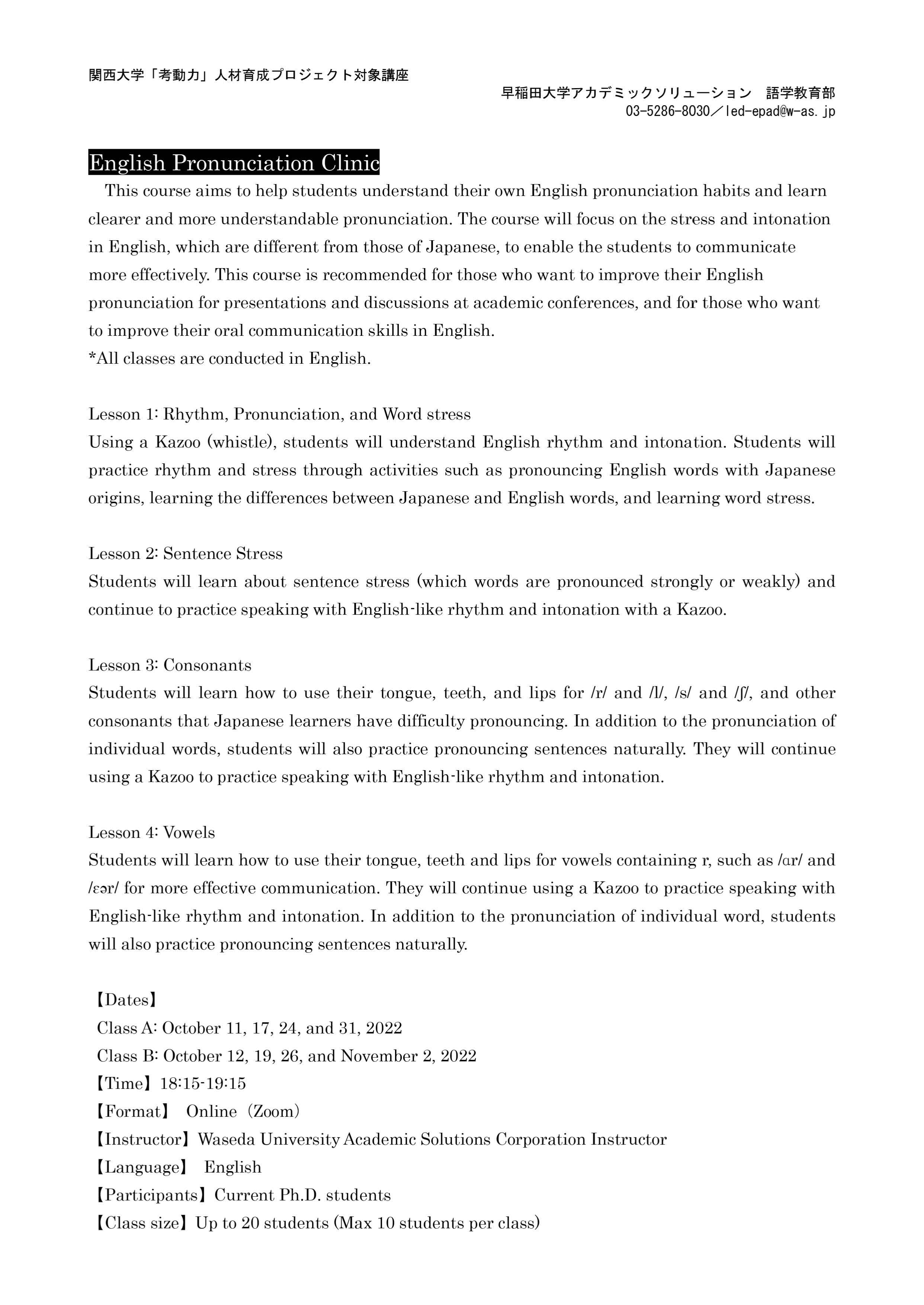 2022/09/23 【博士後期課程在学生向け】英語発音クリニック講座